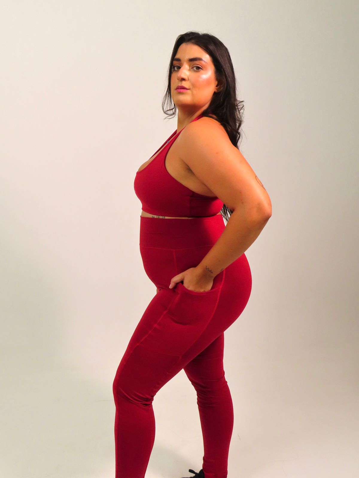 Modelagem: Possui cós duplo e alto que valoriza o corpo. Devido a ausência de costura central na parte da frente, promove conforto e não marca na região intima. Com bolsos laterais e um recorde em V no bumbum que trás uma valorização da região.
