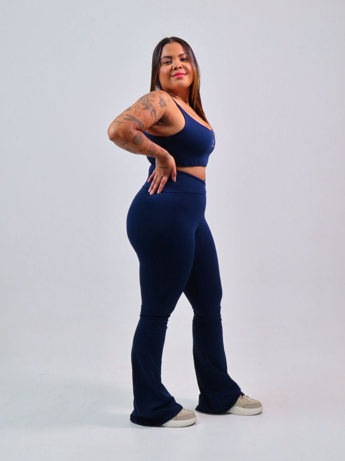 A Legging Flare é a combinação perfeita entre conforto e estilo. A cintura alta e cós transpassado modela a silhueta enquanto a barra flare proporciona fluidez e elegância, ideal para transitar entre o treino e o dia a dia com personalidade.